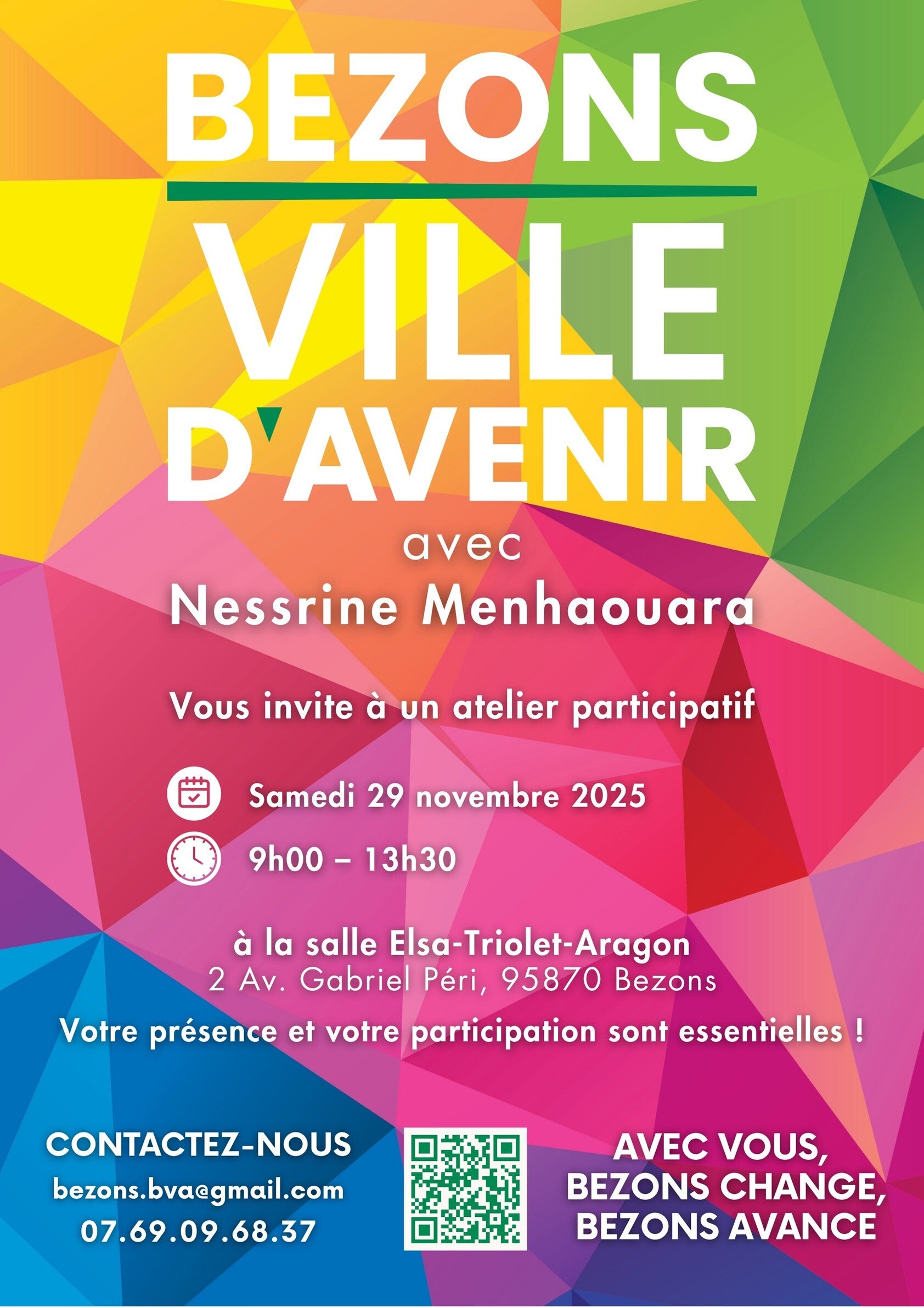 Bezons Ville d’Avenir porte une vision claire pour notre ville : renforcer l’école, améliorer la sécurité, développer le vivre-ensemble et offrir un cadre de vie plus agréable à tous.